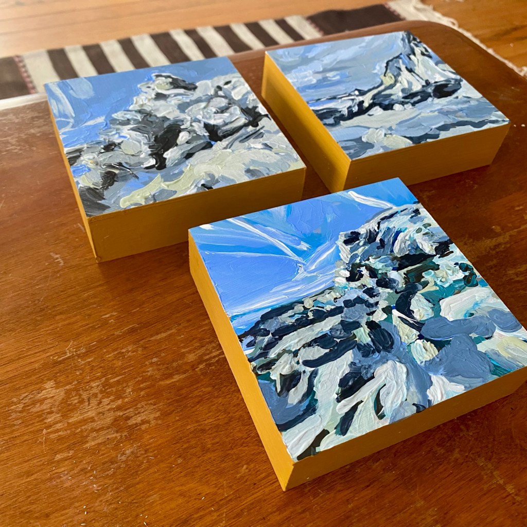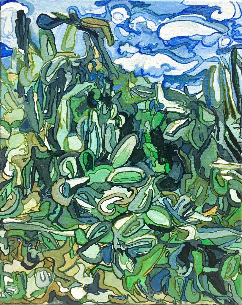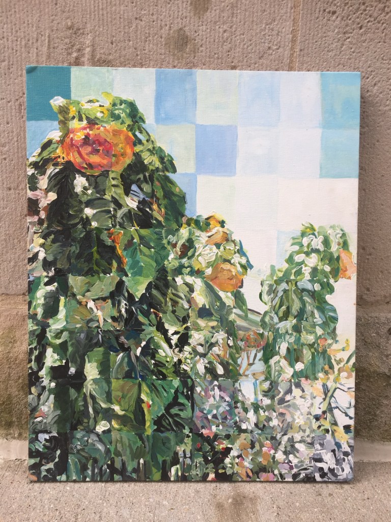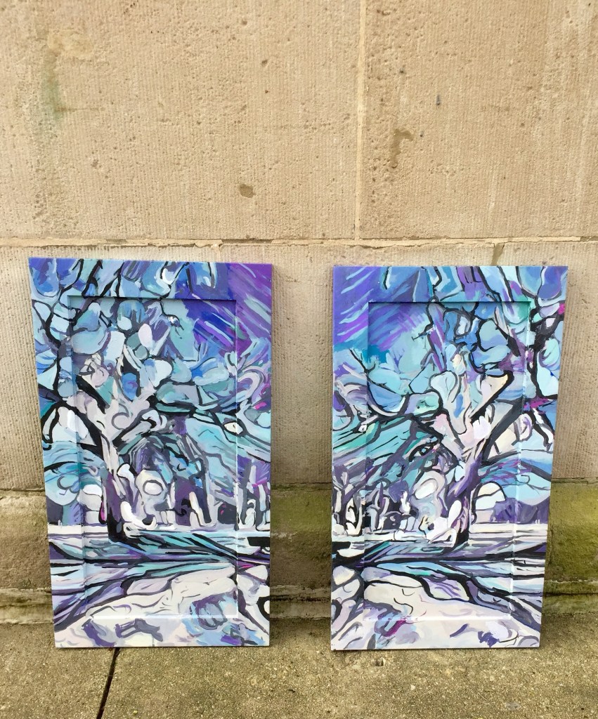 The contrast of natural themes defined by hard contour lines grounds the lightness of the colors in a setting that feels raw and real. Each piece aims to evoke a sense of movement and life, while celebrating its gritty texture.